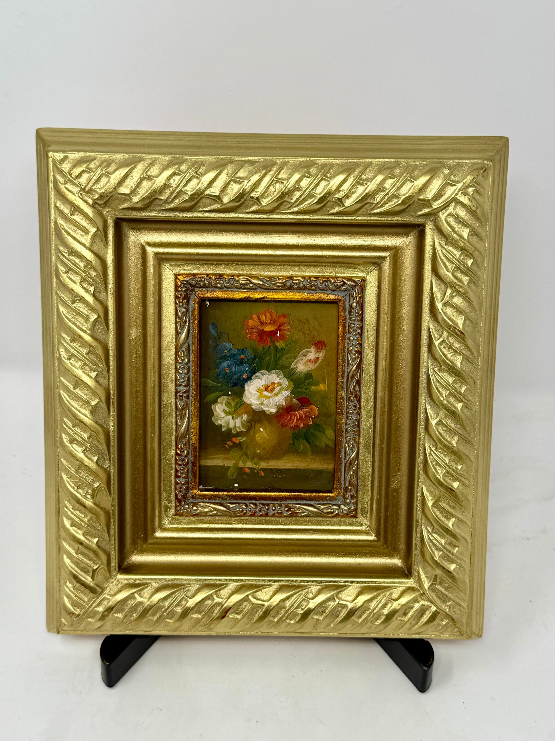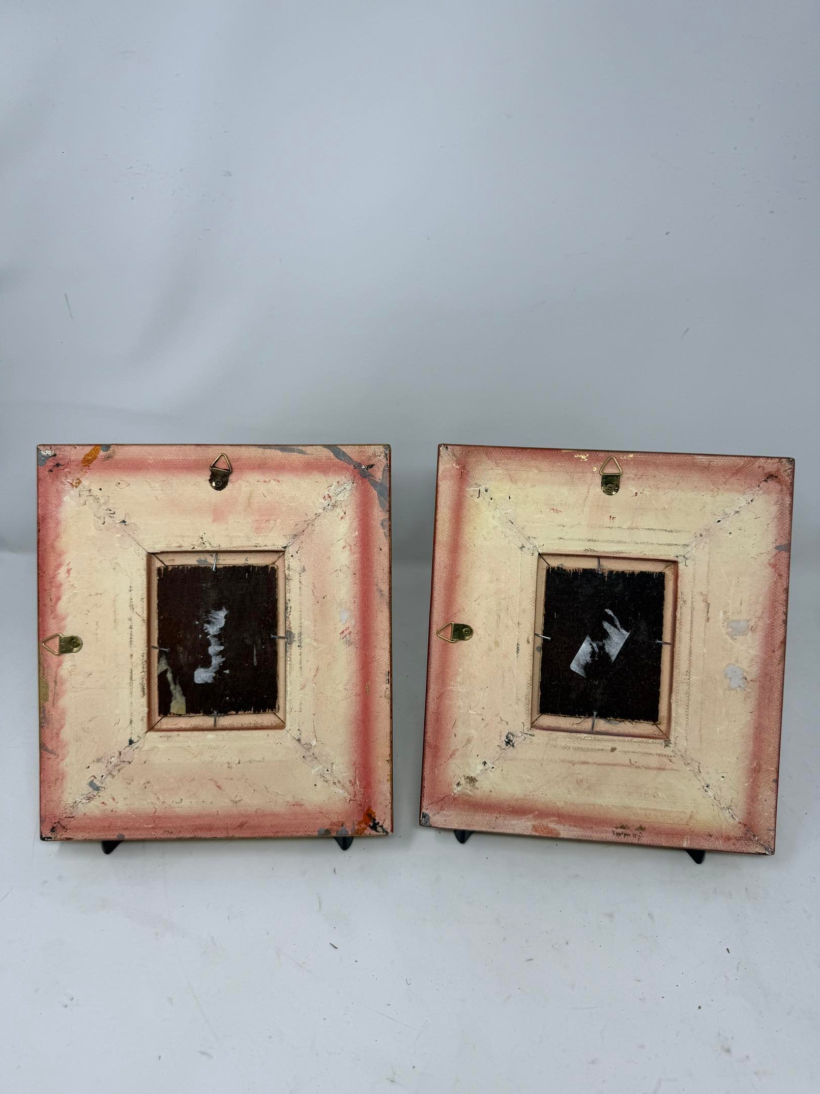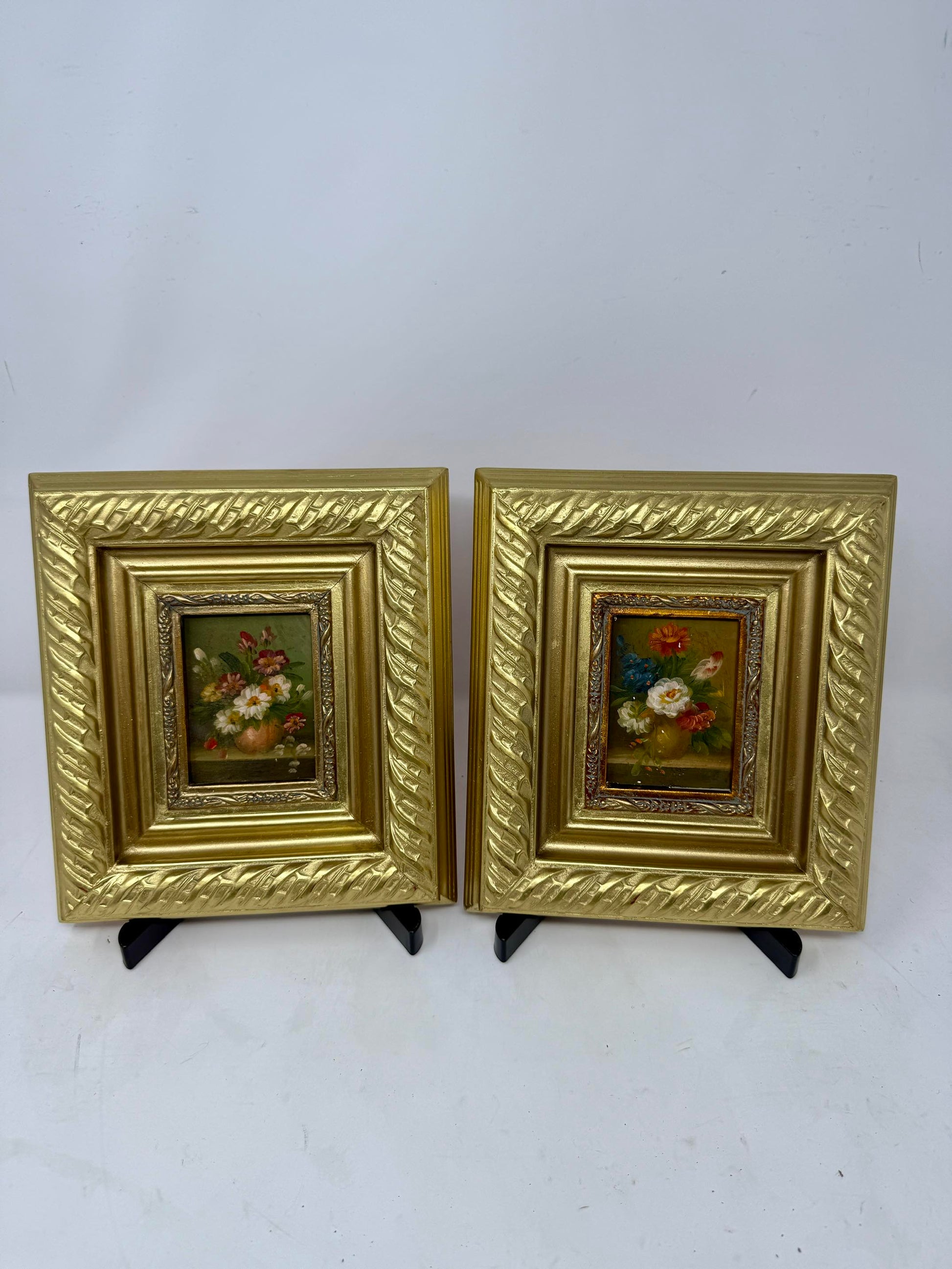 Framed in deeply carved gold with braided edges and ornate inner detailing, this set brings elegance, warmth, and vintage character to any wall or shelf display. Perfect as a matching pair to elevate a small space with classic charm.