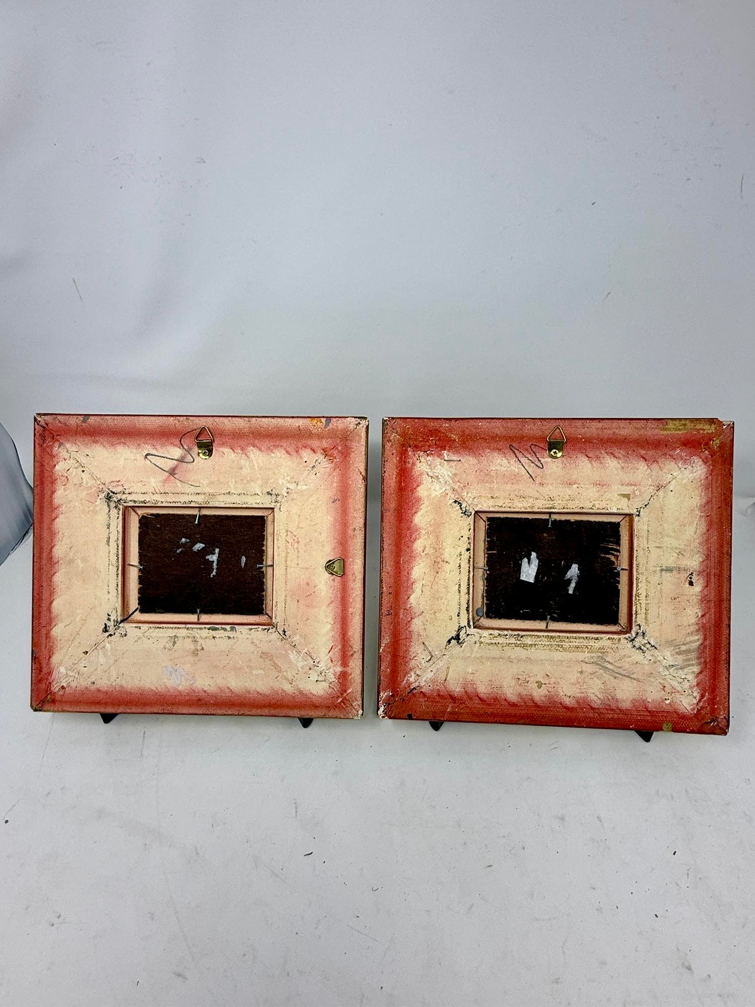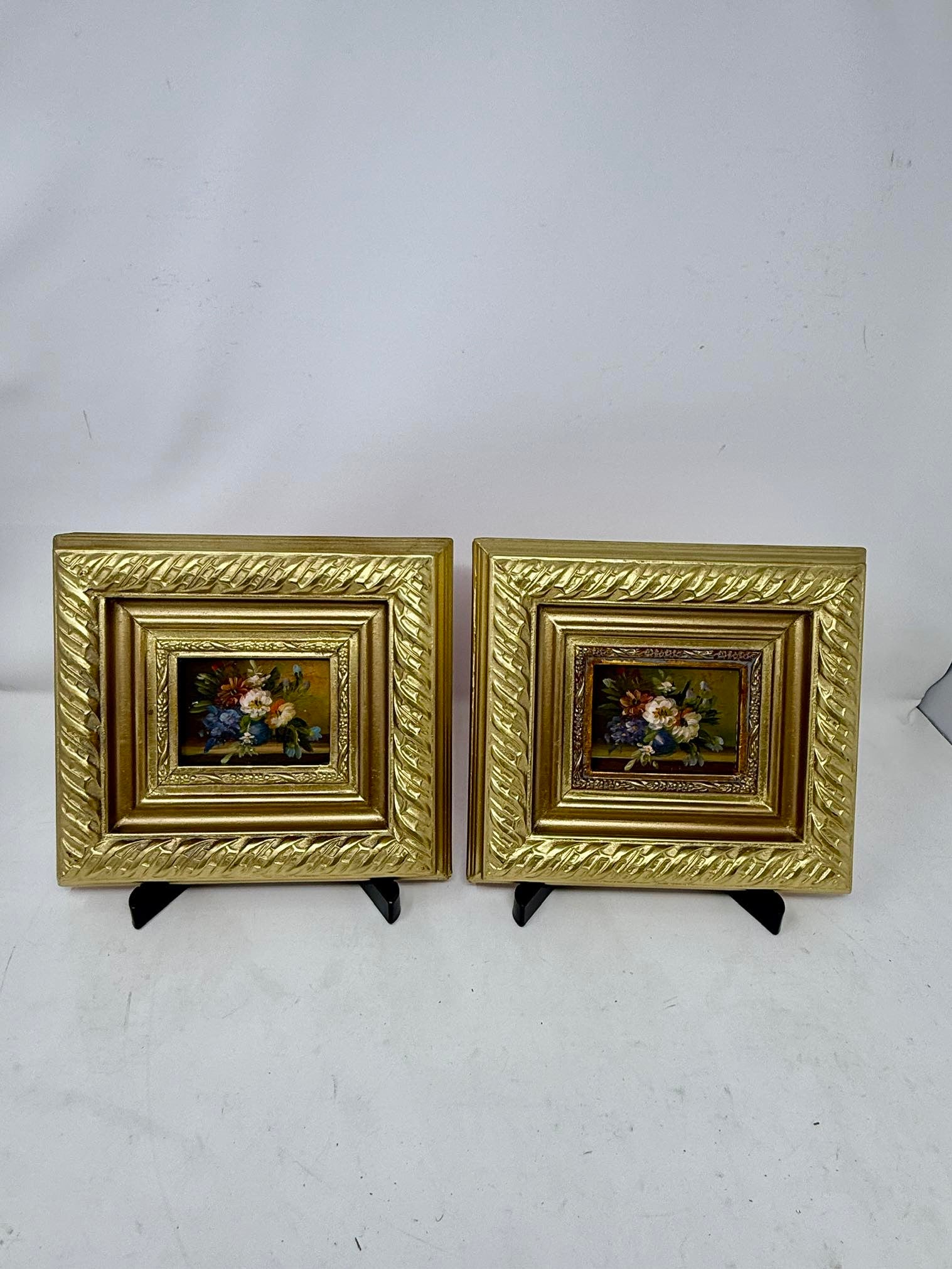 Set in richly carved gold frames with braided edging, this duo brings depth, charm, and classic European elegance to any gallery wall, shelf vignette, or cozy room corner.